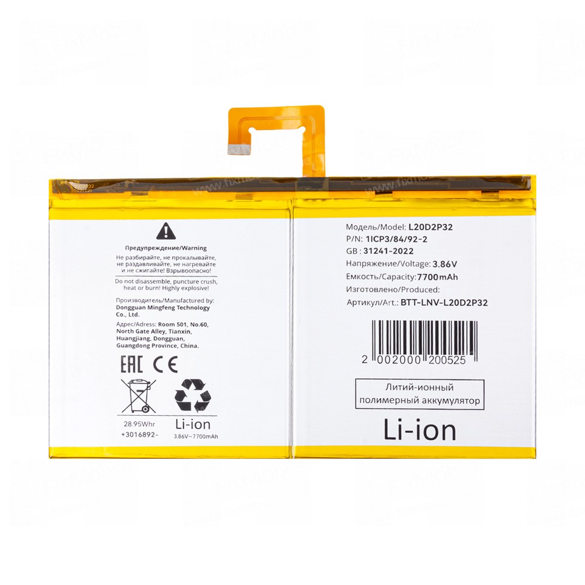 Аккумуляторная батарея для Lenovo Tab P11 LTE (TB-J606L) L20D2P32